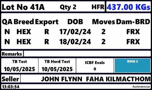 Thursday 19 Feb, Ring 2, Calf Sale, Intake 9am, Viewing 10am to 11.30am, Start 12:00