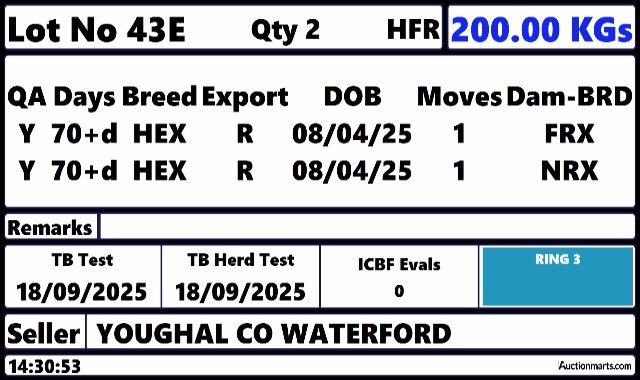 Thursday 26 Mar, Ring 2, Calf Sale, Intake 9am, Viewing 10am to 11.30am, Start 12:00