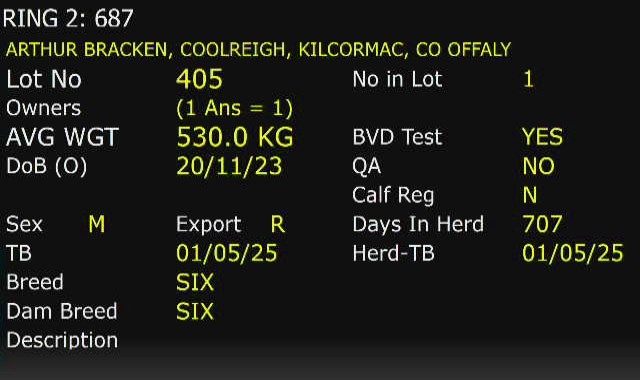 Monday 3 Nov, Ring 2, WEANLING HEIFERS, Intake 2.00pm to 4.00pm, Viewing 3.00pm to 5.00pm, Start 17:30
