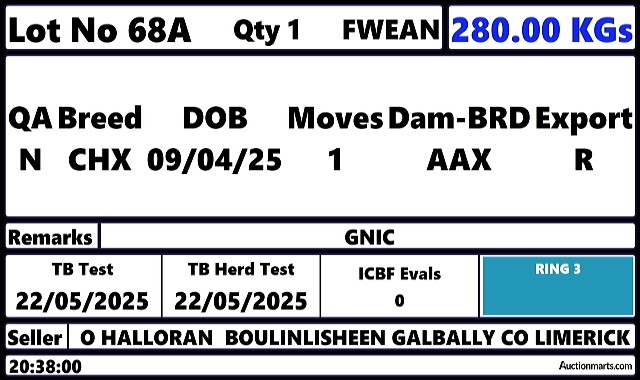 - ನಿಮ್ಮ ಮೊಬೈಲ್ Cahir Mart (Cork Marts) ನಲ್ಲಿ ನೋಂದಾಯಿಸದಿದ್ದರೆ, ದಯವಿಟ್ಟು Cahir Mart (Cork Marts) ಗೆ ಕರೆ ಮಾಡಿ +353 579 300 591 ಆನ್ಲೈನ್ ಬಿಡ್ಡಿಂಗ್ಗಾಗಿ ನಿಮ್ಮನ್ನು ಹೊಂದಿಸಲು.
