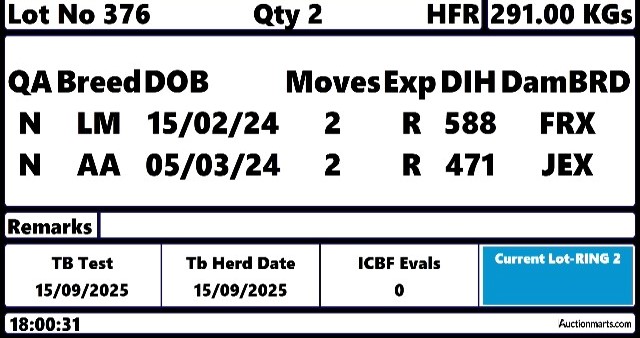 Monday 27 Oct, Ring 1, Calf Sale Incl Weanling Sale, Intake 8am, Start 10:30