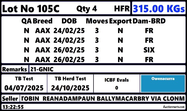 - If your mobile is not registered with Corrin Mart (Cork Marts), please call Corrin Mart (Cork Marts) on +353 579 300 591 to set you up for online bidding.