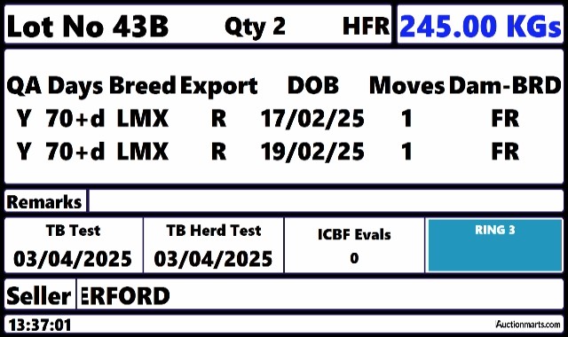 Thursday 12 Mar, Ring 2, Calf Sale, Intake 9am, Viewing 10am to 11.30am, Start 12:00