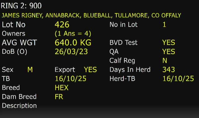Monday 27 Oct, Ring 2, WEANLING HEIFERS, Intake 2.00pm to 4.00pm, Viewing 3.00pm to 5.00pm, Start 17:30