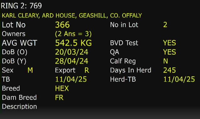Monday 10 Nov, Ring 2, WEANLING HEIFERS, Intake 2.00pm to 4.00pm, Viewing 3.00pm to 5.00pm, Start 17:30