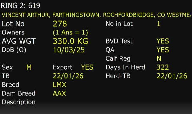 Monday 2 Feb, Ring 2, WEANLING HEIFERS, Intake 2.00pm to 4.00pm, Viewing 3.00pm to 5.00pm, Start 17:30