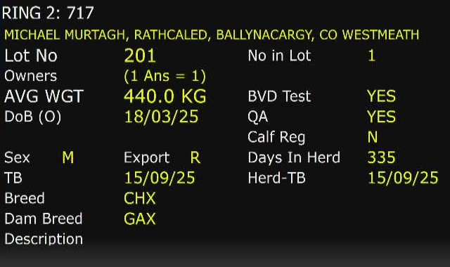 Tuesday 24 Feb, Ring 3, Calf sale , Start 12:00