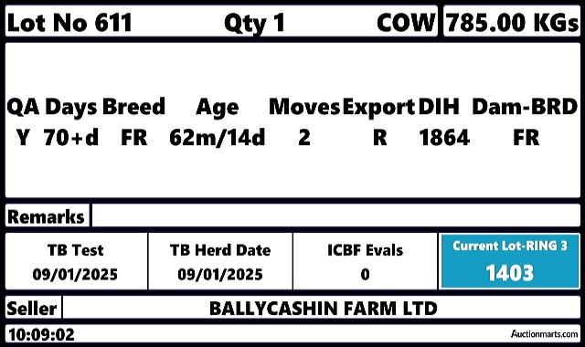 Saturday 13 Dec, Ring 3, CALF SALE, Intake 7.00 AM, Viewing 9.30 AM, Start 10:00